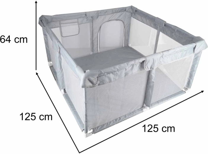 Parc pour enfants pratique de 120 × 120 cm créant un espace de jeu sûr et spacieux ainsi qu’un coin repos. Grâce aux parois en maille, vous gardez toujours bébé en vue, l’entrée zippée facilite l’accès et le montage facile sans vis fait gagner du temps. La stabilité est assurée par des raccords avec ventouses, tandis que les bords textiles souples augmentent la sécurité et le confort.