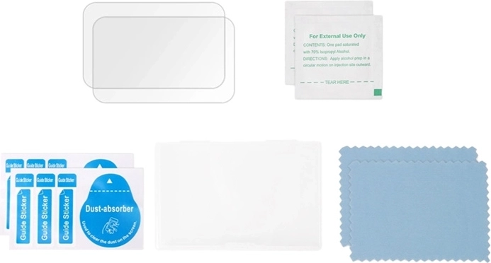 - 2× verre trempé, 2× jeu d’autocollants dépoussiérants, 2× chiffon de nettoyage, 2× lingette de nettoyage, boîte de rangement