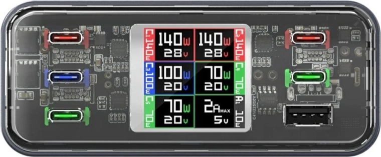 Le système modulaire DIY vous permet d’organiser les ports de manière flexible selon vos besoins. L’écran LED intégré affiche la répartition de puissance en temps réel et les paramètres de charge. Le boîtier en aluminium n’est pas seulement esthétique ; il dissipe également la chaleur efficacement et augmente la durabilité de l’ensemble de l’appareil.