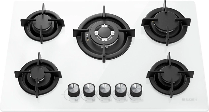 Découvrez la flexibilité des cinq zones de cuisson : du réchauffage délicat des sauces à la friture rapide. La plage de puissances (1x 1 kW, 2x 1,75 kW, 1x 2,7 kW, 1x 3,3 kW) garantit une flamme idéale pour chaque plat. La surface en verre apporte un look moderne et se nettoie très facilement – un simple coup de chiffon humide suffit.