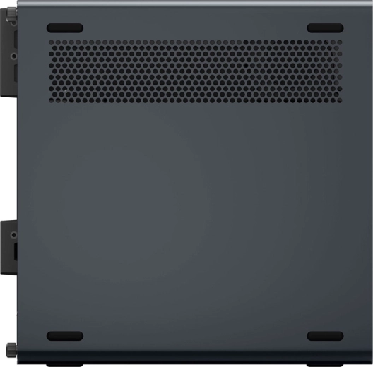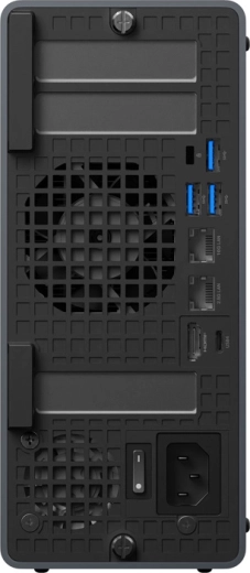 Les larges possibilités d’extension raviront les professionnels : jusqu’à 256 Go de DDR5 dans quatre emplacements SO‑DIMM et 4× M.2 NVMe (PCIe 4.0/3.0) permettent de créer des arrays rapides avec prise en charge RAID 0/1/5/10. L’équipement réseau avec 2× 25GbE SFP+, 10GbE RJ45 et 2,5GbE RJ45 (vPro) apporte le standard industriel au format de bureau.