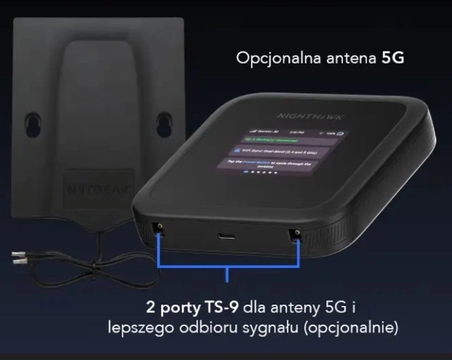 La batterie de 5185 mAh tient jusqu’à 13 heures. L’écran LCD 2,4" facilite la gestion et les ports TS9 permettent de connecter des antennes 5G externes pour un meilleur signal.