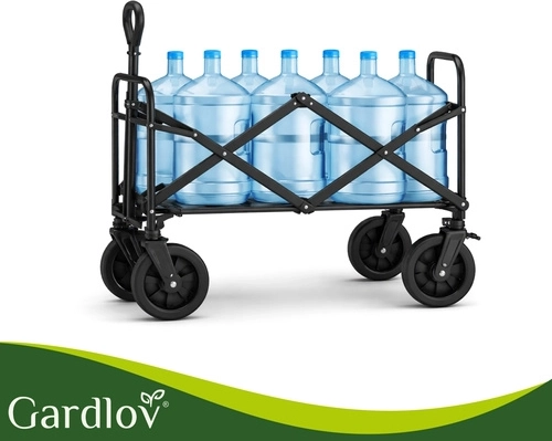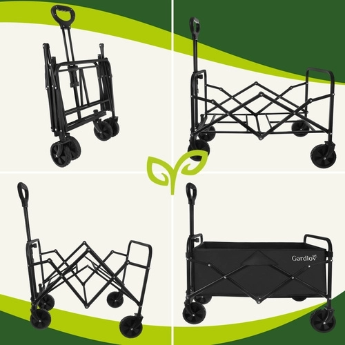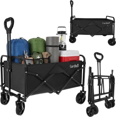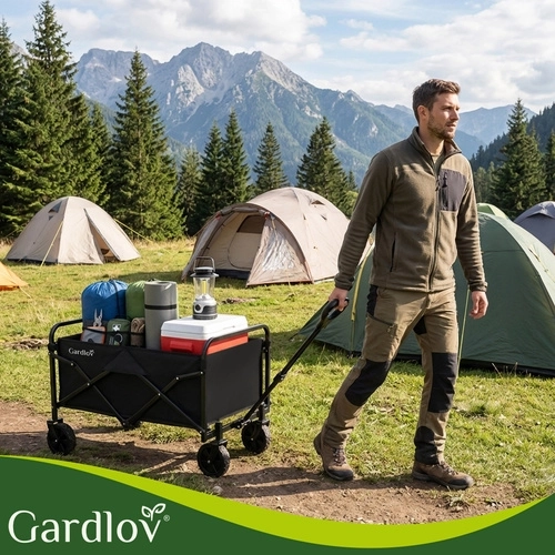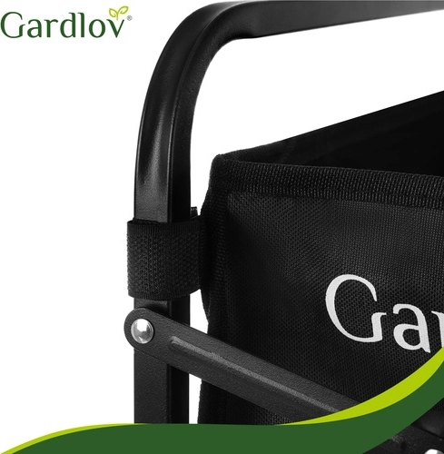 Le chariot pliable GARDLOV vous facilite le travail au jardin, à la maison de campagne comme lors des courses. Grâce à son volume de 90 l, sa capacité de charge jusqu’à 100 kg et sa structure en acier robuste, vous transportez aisément outils, terre, plantes et bagages. La toile Oxford 600D imperméable avec revêtement PVC, les roues avant pivotantes à 360° et la poignée télescopique assurent une manipulation confortable et sûre. Le chariot se plie en quelques secondes et tient dans le coffre de la voiture.