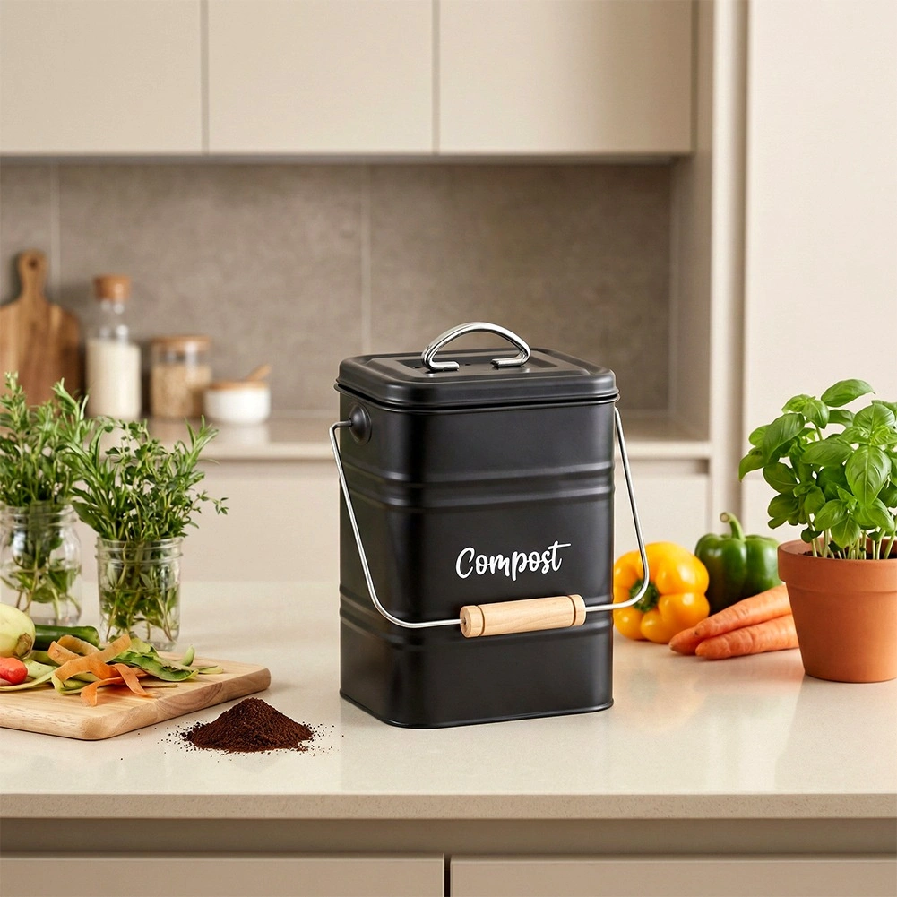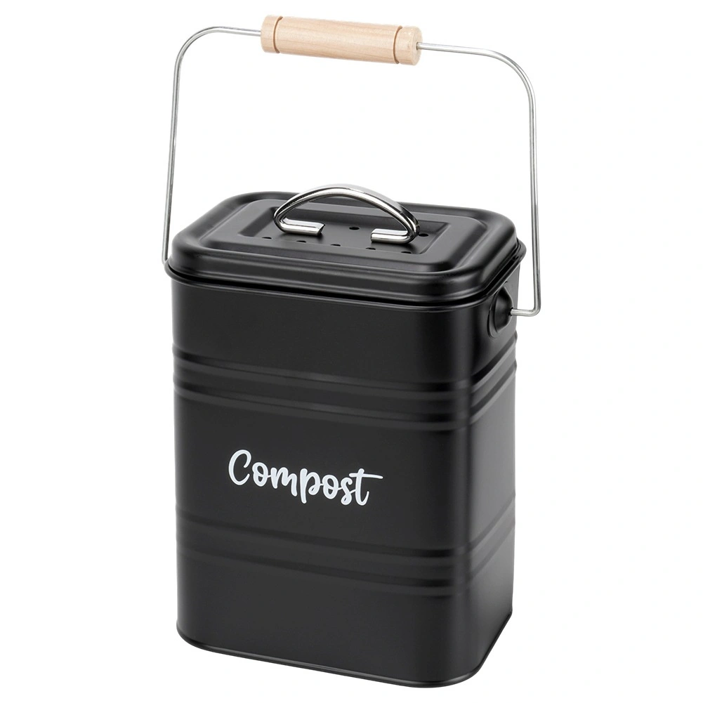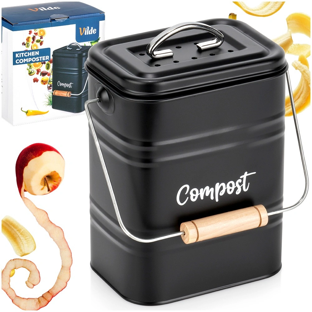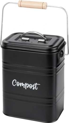 Composteur de cuisine avec filtre au charbon, en métal, noir, 5 l