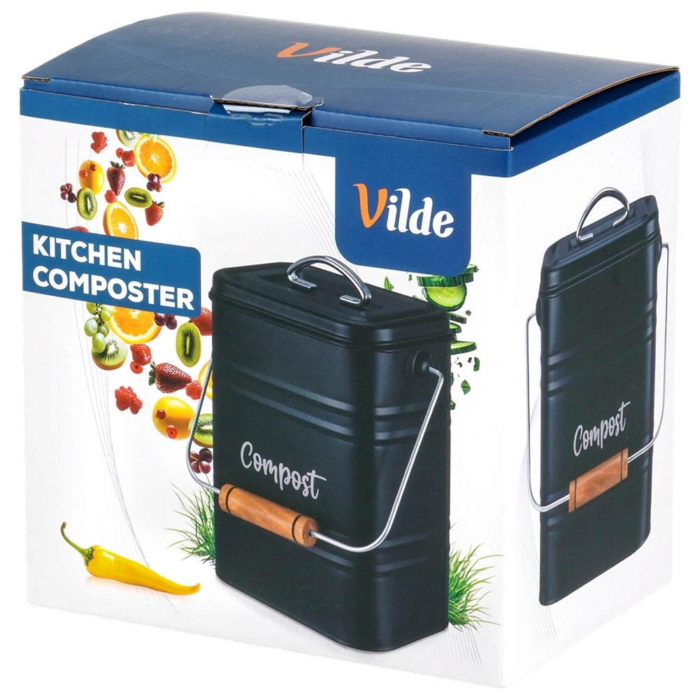 Le composteur de cuisine en métal d’une capacité de 5 litres est une solution pratique pour la collecte quotidienne des épluchures, du marc de café et d’autres restes organiques. Le couvercle avec filtre au charbon remplaçable assure une neutralisation efficace des odeurs, ce qui permet d’utiliser le récipient sans crainte en intérieur.