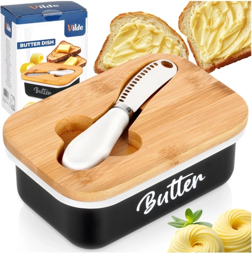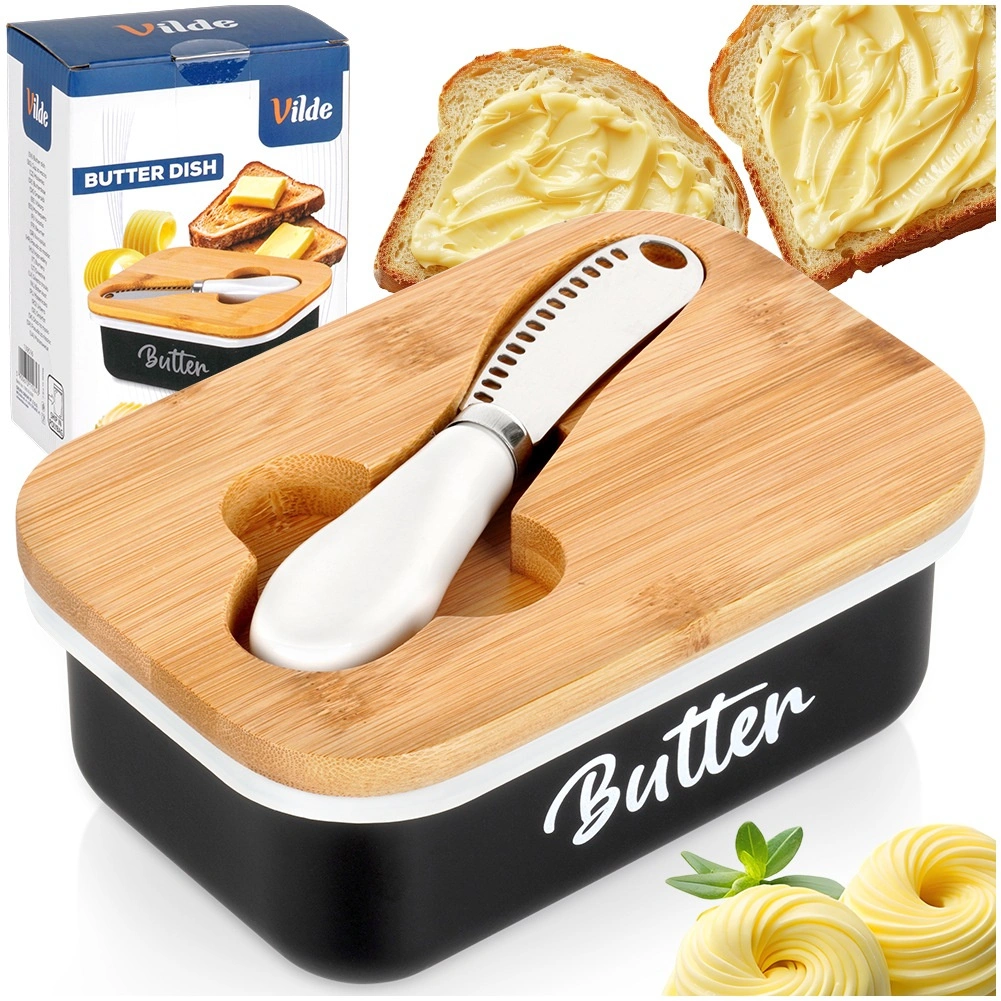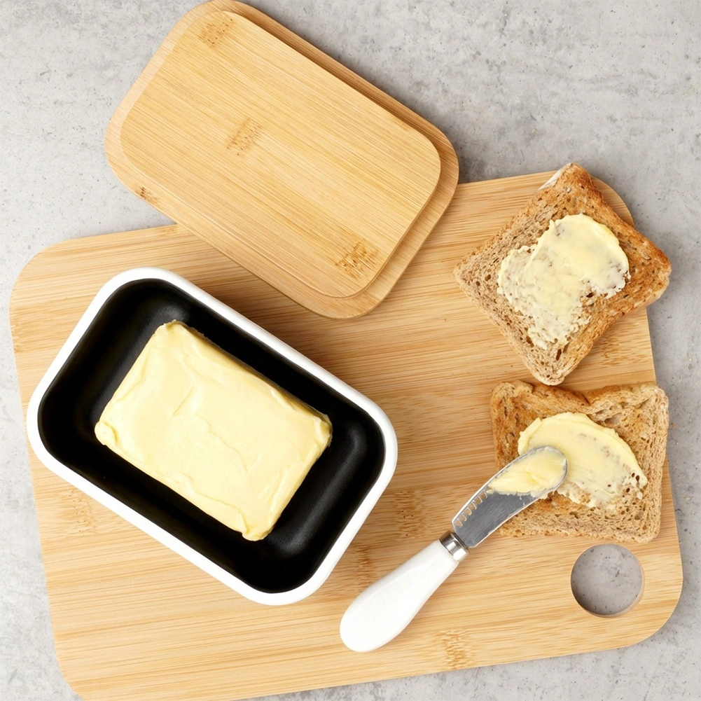 Le couvercle en bambou naturel aide à garder le beurre protégé et frais plus longtemps – idéal au réfrigérateur comme sur la table.