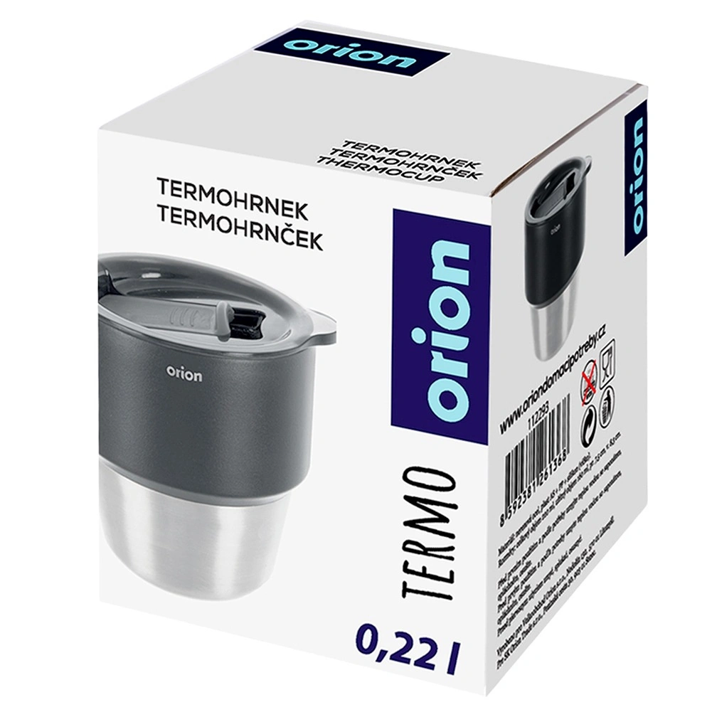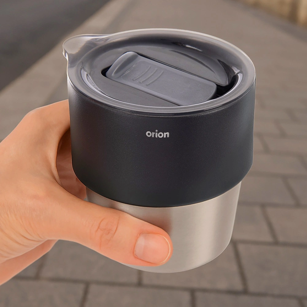 Tasse isotherme compacte 220 ml pour café et thé à emporter, qui garde les boissons chaudes ou froides plus longtemps grâce à la double paroi à isolation sous vide. Intérieur en acier inoxydable, couvercle coulissant pratique et forme adaptée aux porte-gobelets de voiture. Produit original de la marque ORION pour une utilisation quotidienne.