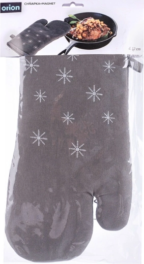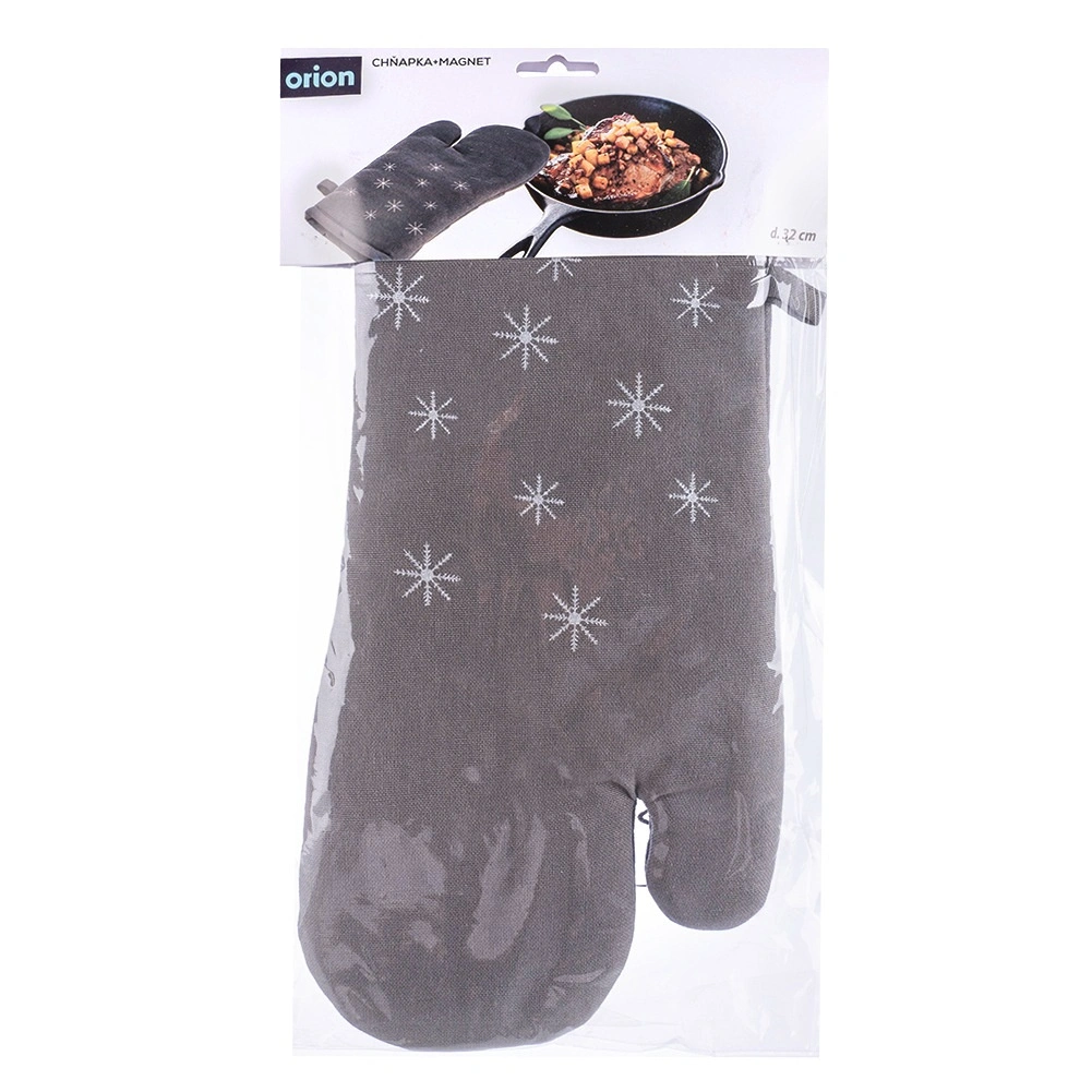 Gant de cuisine pratique en 100% coton, dans une élégante couleur grise avec motif hivernal, offrant une protection fiable contre la chaleur lors de la cuisson et de la pâtisserie. Grâce à sa taille universelle 17,5 × 32 cm, il convient à la main droite comme à la main gauche, avec aimant intégré et boucle pour un accrochage et un rangement faciles. Lavable jusqu’à 30 °C. Qualité éprouvée de la marque ORION.