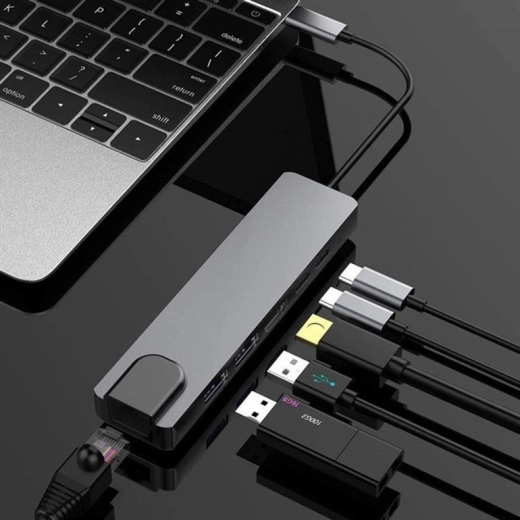 - Interface 6‑en‑1 : USB‑C, USB‑A, HDMI, LAN et autres ports essentiels dans un seul boîtier
