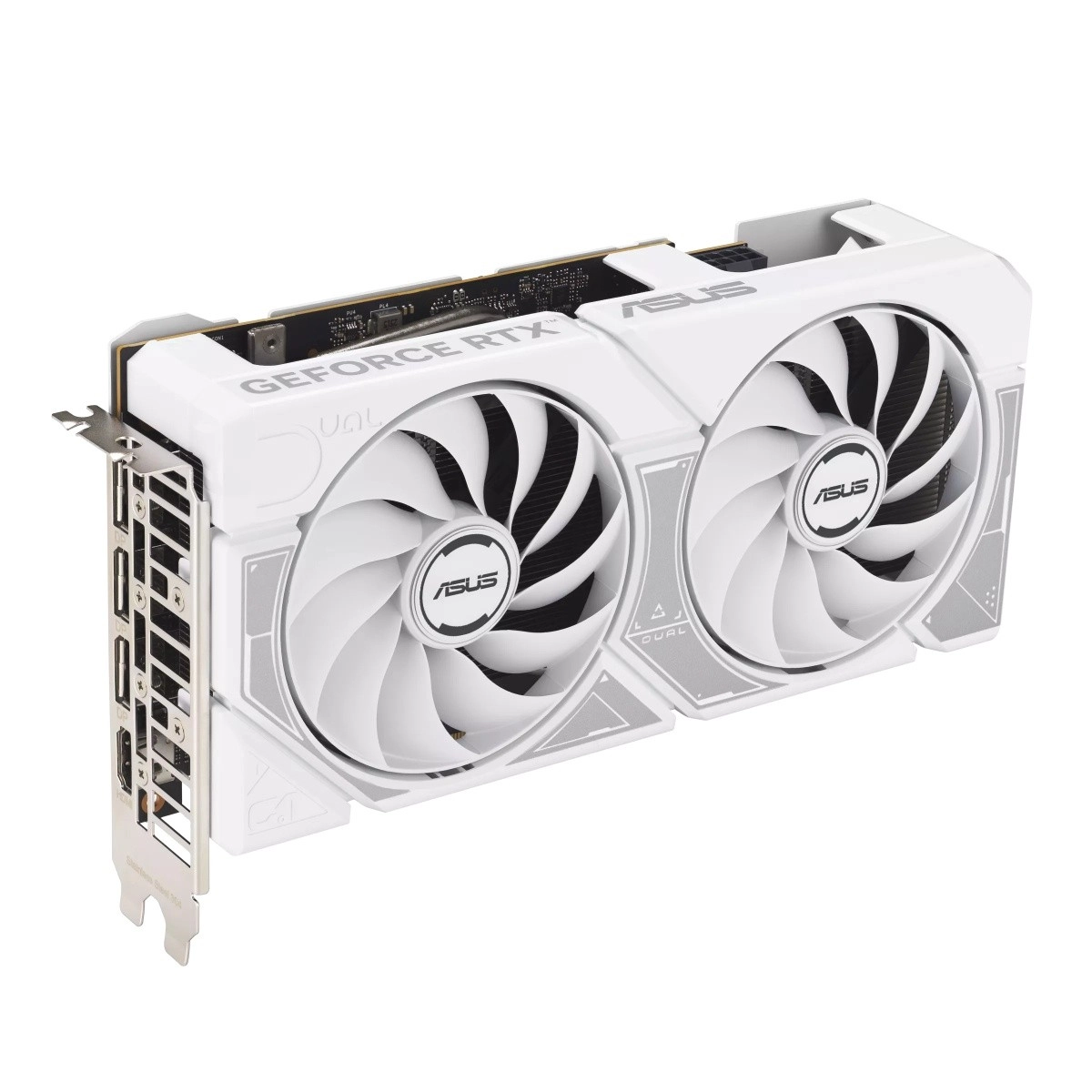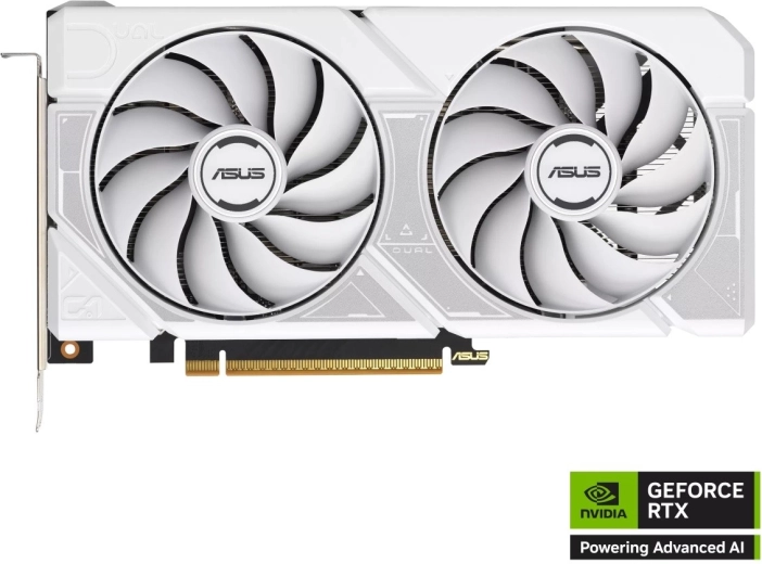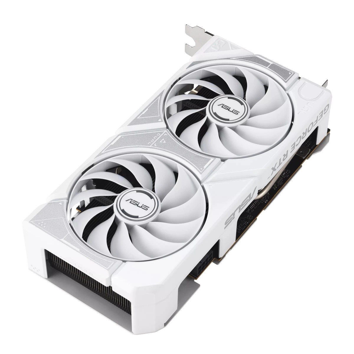 L’ASUS Dual GeForce RTX 5060 OC White mise sur un design compact et un refroidissement efficace hérité des modèles phares. La paire de ventilateurs Axial-tech dirige le flux d’air directement vers le large radiateur afin de maintenir des températures stables même lors de longues sessions de jeu. La finition blanche s’intègre élégamment aux configurations claires et aux PC axés sur une esthétique épurée.