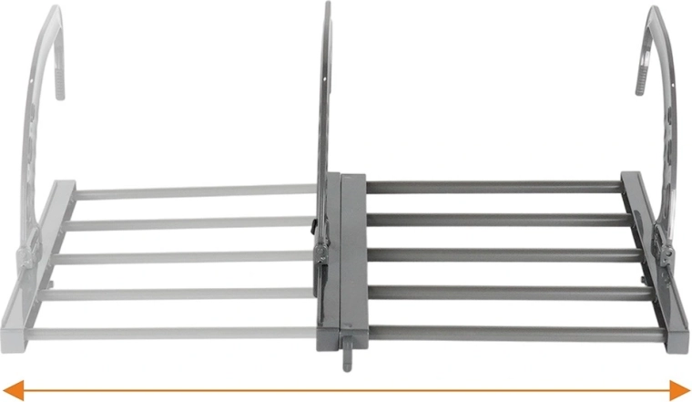 Grâce à sa structure extensible de 32,5 à 60 cm, vous adaptez l’espace à la charge de linge du moment. Au total 10 barres (longueurs 26 et 28 cm) offrent environ 270 cm de surface de séchage – idéal pour les sous-vêtements, les vêtements pour enfants, les t-shirts ou les serviettes. Deux supports pratiques pour petites pièces facilitent le séchage des chaussettes ou des sous-vêtements.