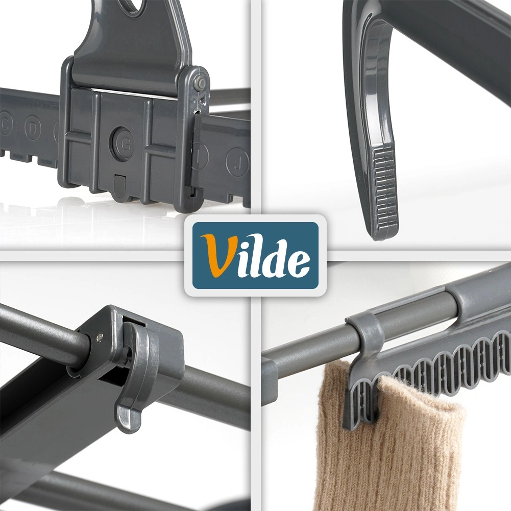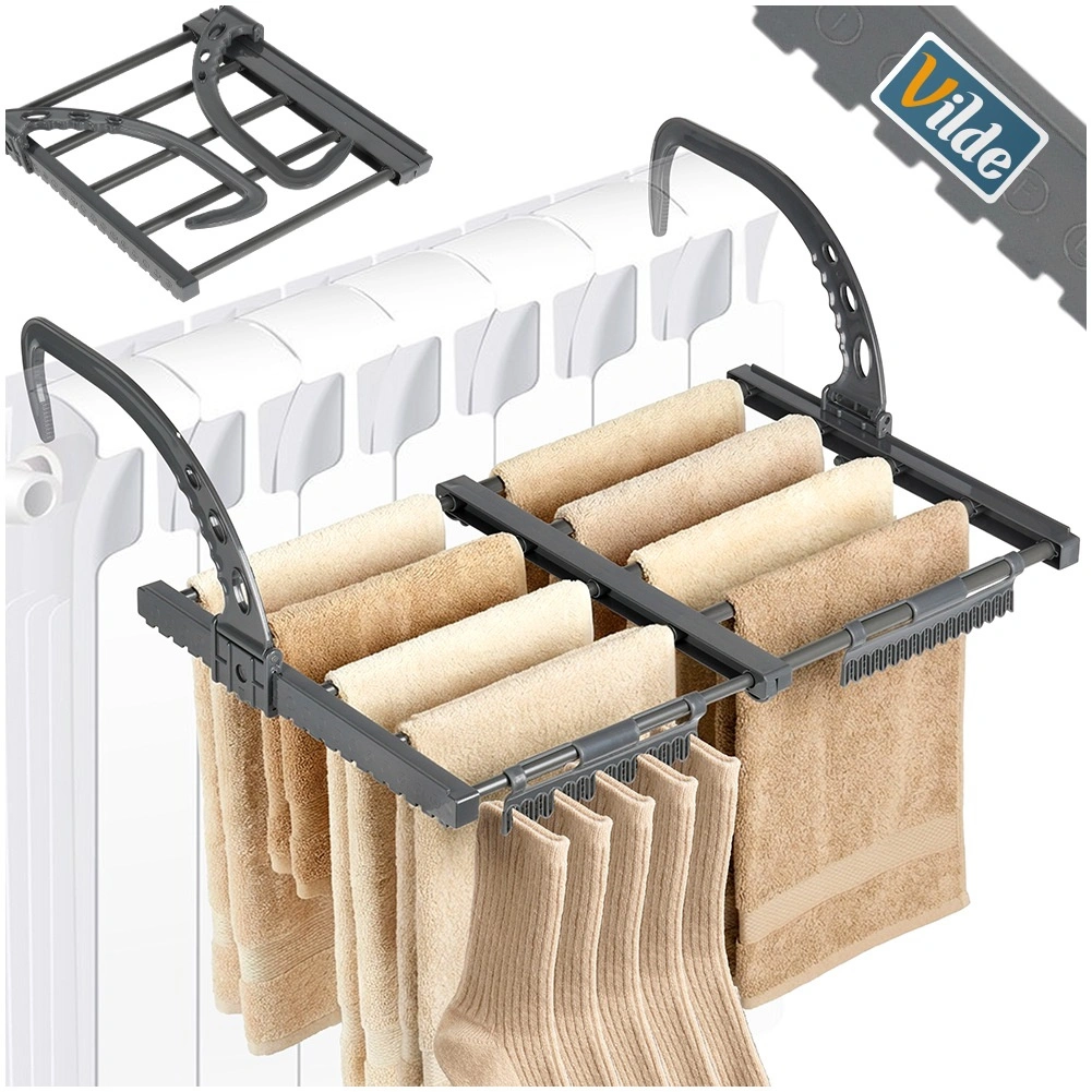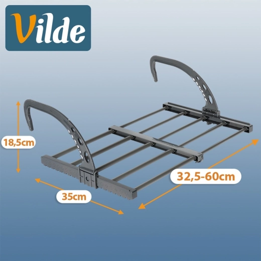 Le sèche-linge extensible pour radiateur de la marque VILDE fait gagner de la place et accélère le séchage grâce à la chaleur du chauffage. Grâce à sa largeur réglable de 32,5 à 60 cm, à sa structure métallique robuste et à ses crochets pliants, il convient à la salle de bain, au balcon et aux petits appartements. Il offre jusqu’à 270 cm de surface de séchage et supporte jusqu’à 5 kg de linge.