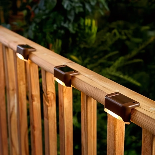 Pratique lot de 4 lampes solaires d’extérieur pour éclairer en toute sécurité les escaliers, terrasses et garde‑corps. Allumage automatique au crépuscule, LED économes, lumière chaude et agréable et conception étanche pour une utilisation toute l’année sans câbles.