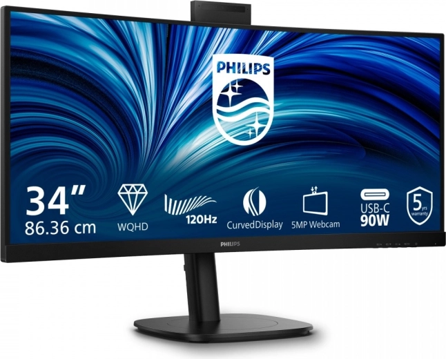 Profitez d’une image immersive sur un écran ultralarge au format 21:9. Le moniteur PHILIPS 34B2U3600CH propose une dalle VA incurvée pour des noirs profonds, un USB‑C avec alimentation pour connecter facilement votre ordinateur portable, un commutateur KVM intégré, un RJ45 pour un réseau stable et une webcam escamotable pour les appels vidéo – le tout avec un design ergonomique HAS.