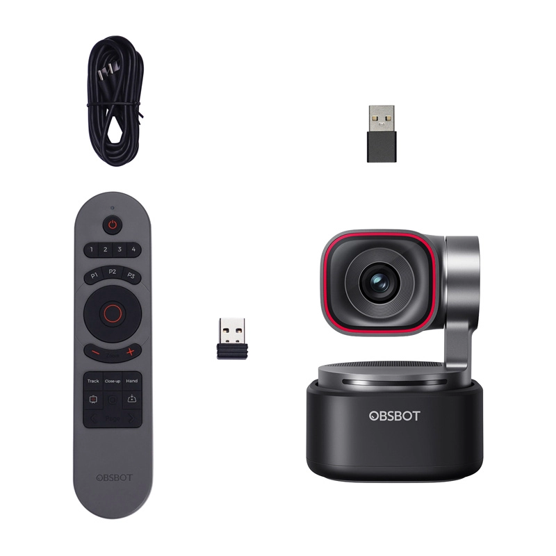 Le logiciel OBSBOT Center ajoute des outils de création : PiP, prompteur, superpositions graphiques, NVIDIA Maxine Eye Contact, Beauty Mode et un incrustage d’arrière‑plan amélioré. L’écosystème OBSBOT prend en charge des accessoires comme Vox SE et les contrôleurs Stream Deck. Le coffret inclut également la OBSBOT Tiny Smart Remote 2 – télécommande de caméra et présentateur en un.