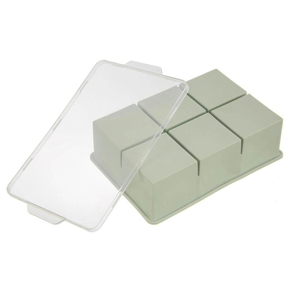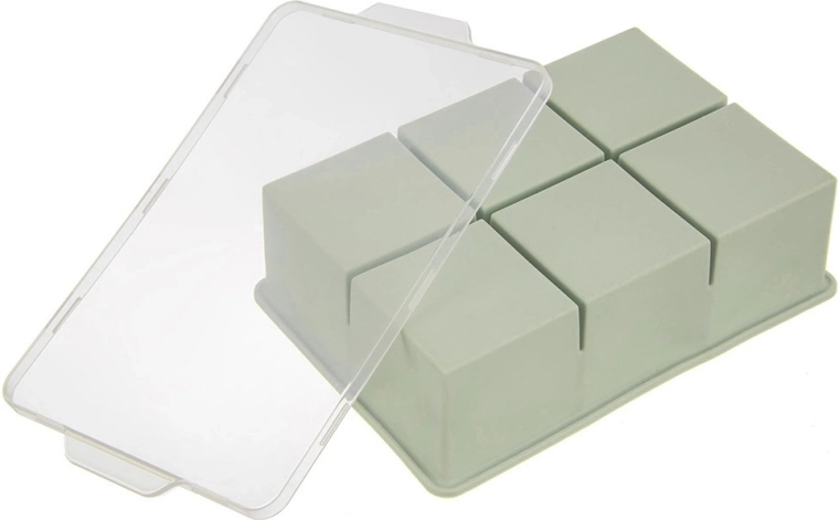 - Silicone (moule), plastique (couvercle transparent)