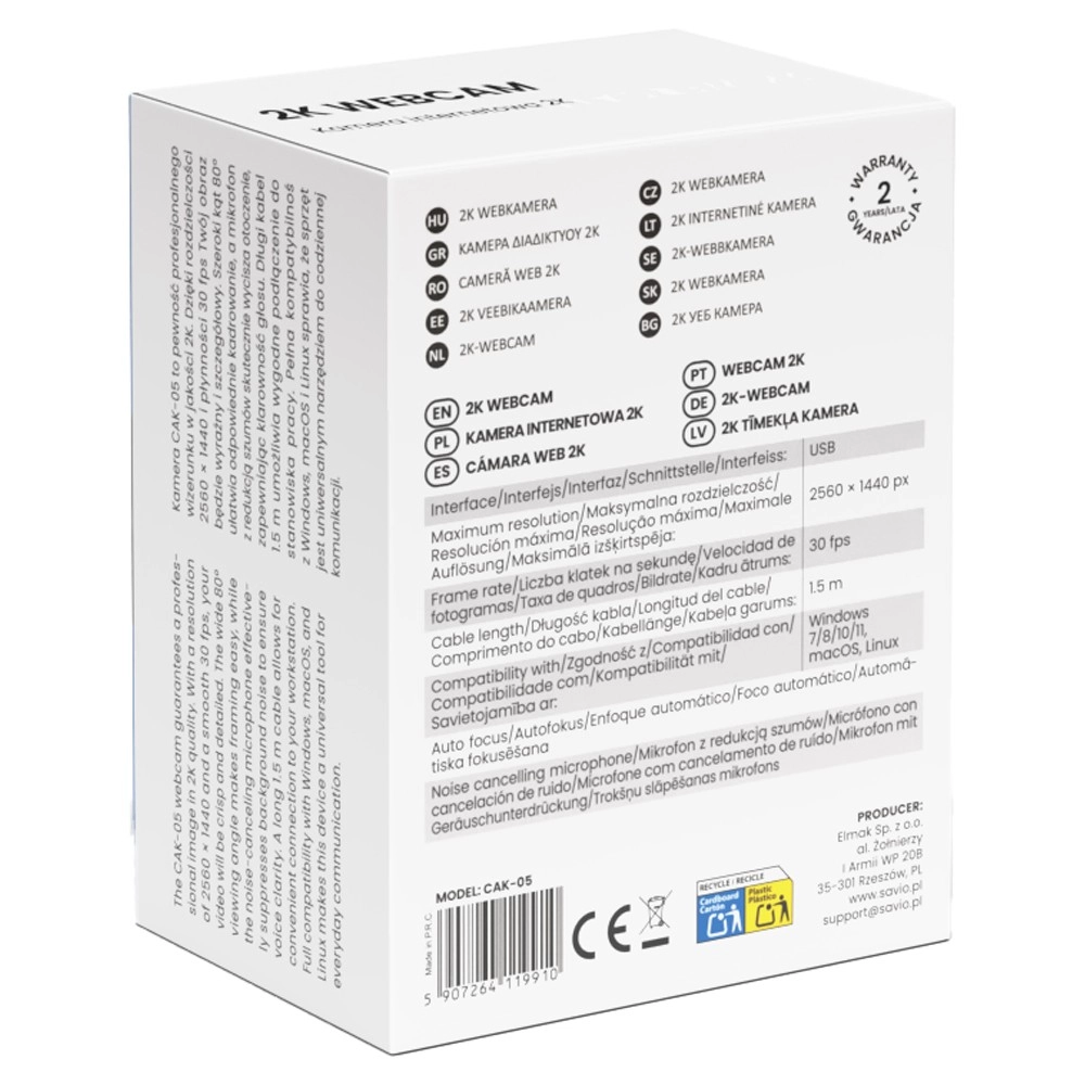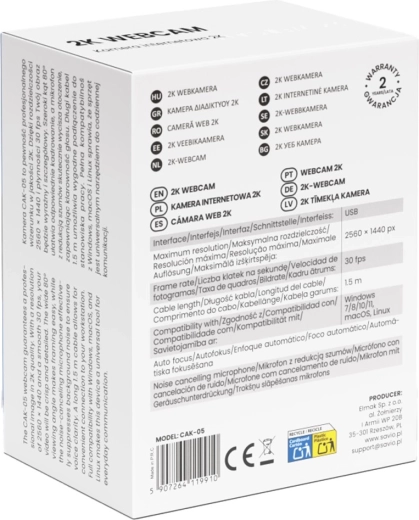 La webcam CAK‑105 est idéale pour le télétravail, l’enseignement en ligne et les appels vidéo avec la famille. L’image nette en 2K met en valeur les détails et offre un rendu professionnel, même avec des outils de visioconférence exigeants.