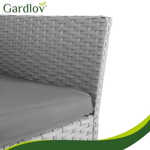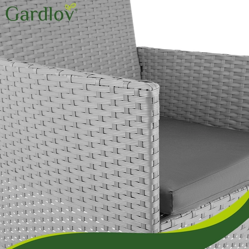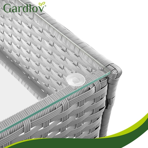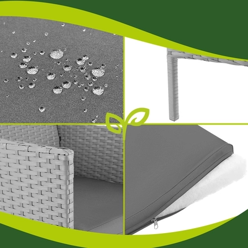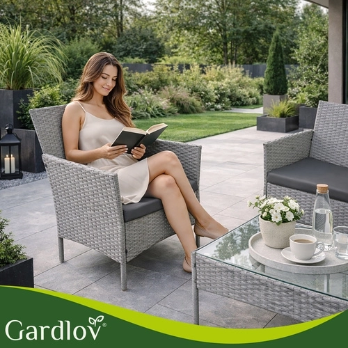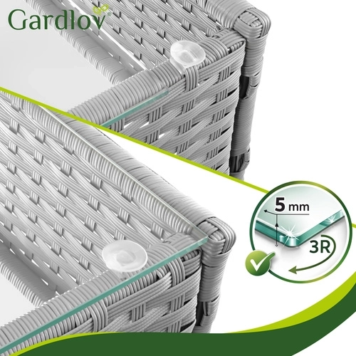 Créez votre coin détente avec l’élégant ensemble GARDLOV. Grâce à la résine tressée résistante et à la solide structure en acier, le mobilier est stable, durable et prêt pour une utilisation quotidienne en extérieur. Les matériaux imperméables et résistants aux UV ne se décolorent pas et se nettoient facilement – un simple chiffon humide suffit.