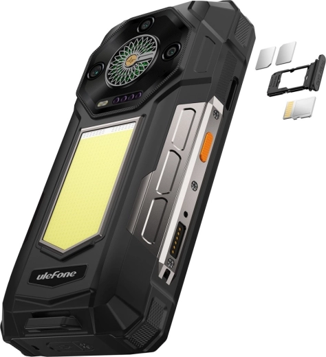 À l’intérieur, un MediaTek Helio G100 octa‑cœur fonctionne avec 12 Go de RAM pour un multitâche serein. L’espace de données est assuré par 512 Go avec possibilité d’extension jusqu’à 2 To via microSD. L’énorme batterie de 25 500 mAh maintient le téléphone en service pendant plusieurs jours et la charge rapide 66 W réduit le temps passé à la prise.
