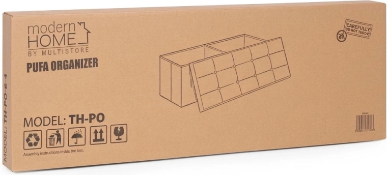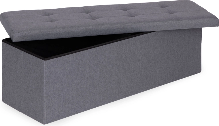 À l’intérieur se trouve un grand caisson à accès facile, complété par une cloison amovible pour organiser clairement les objets rangés. La structure en MDF résistante garantit stabilité et durabilité, tandis que le mécanisme de pliage simple facilite le montage et d’éventuels déplacements.