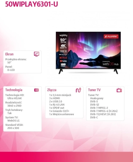 Ce téléviseur LED de 50 pouces offre une image nette sur une grande diagonale dans un format ultra-fin et élégant. Son design minimaliste avec cadre étroit convient à tout intérieur et la paire de pieds en forme de V garantit une installation stable sur une commode ou un meuble TV.