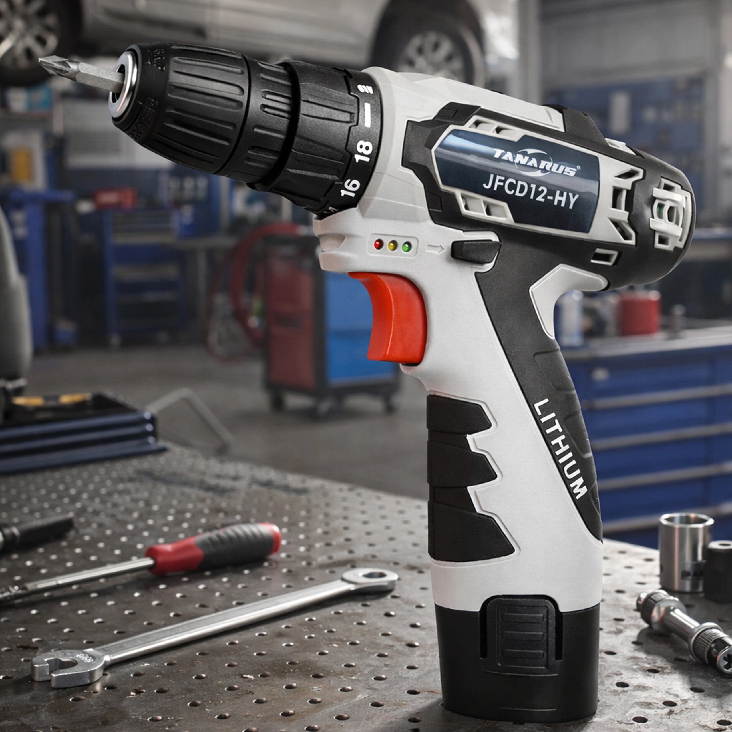 Ce tournevis sans fil 12 V léger et performant est idéal pour le montage de meubles, les réparations domestiques et les petits projets de bricolage. Grâce aux deux batteries 1,5 Ah, vous pouvez travailler sans interruption pendant que l’une se recharge. La lumière LED intégrée améliore la visibilité dans les recoins sombres et le réglage précis du couple protège les vis et le matériau.