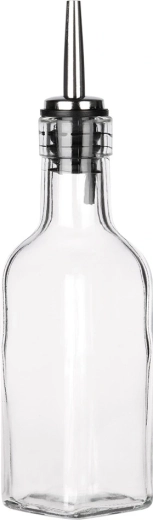 Son look élégant convient aux cuisines modernes comme traditionnelles et constitue un excellent choix pour la maison comme pour la restauration – par exemple dans les pizzerias pour servir des huiles aromatisées. Le verre clair à surface lisse est également mis en valeur avec des herbes ou du piment et transforme les bouteilles en une décoration stylée.