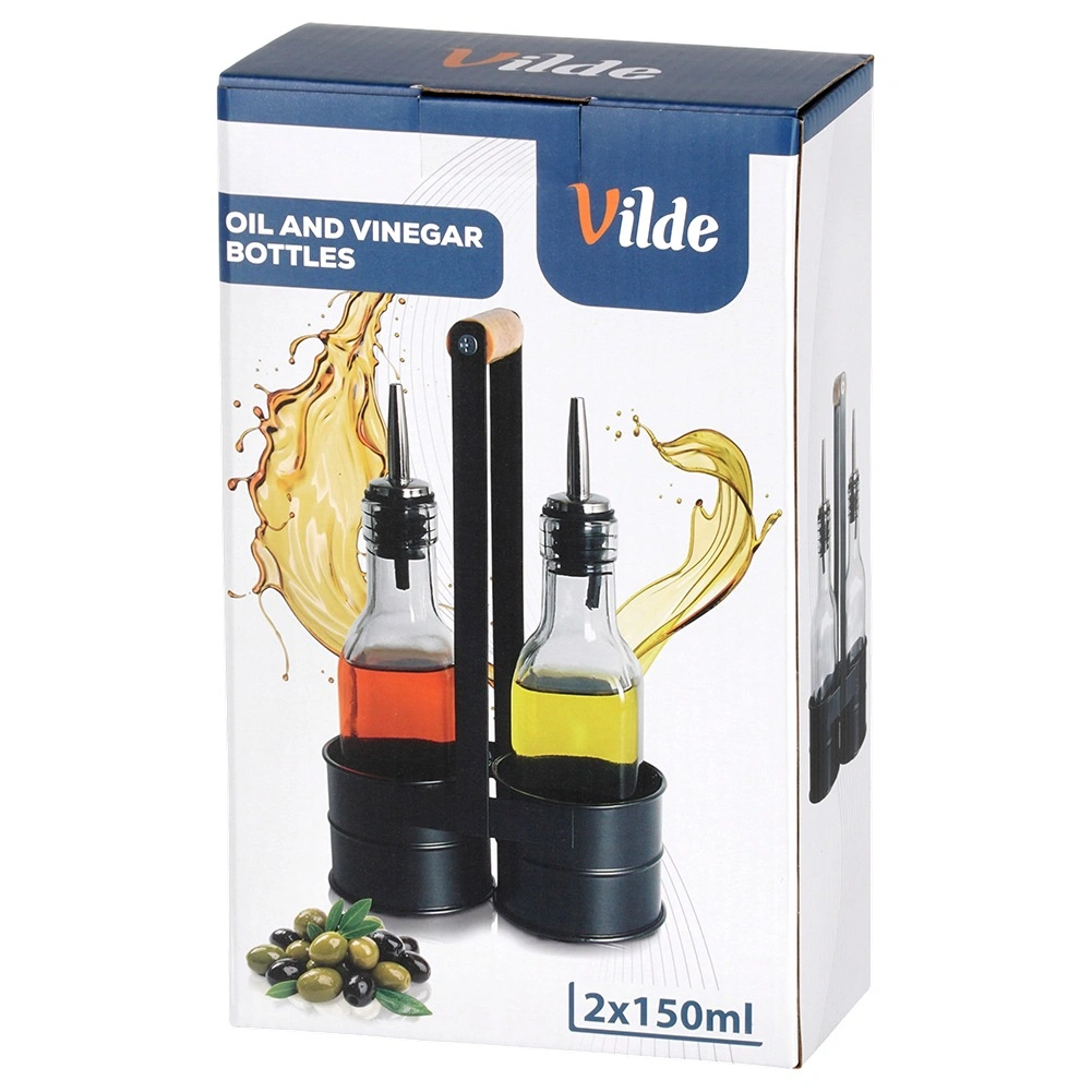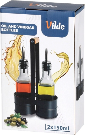 Ensemble de bouteilles en verre pour huile et vinaigre avec support 2×150 ml