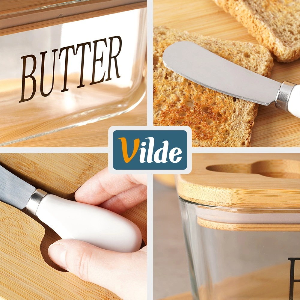 - Set complet : beurrier, couvercle en bambou et couteau à tartiner
