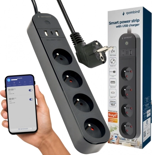 La multiprise intelligente Wi‑Fi de Tuya propose 4 prises 230 V contrôlables individuellement, 2× USB‑A et 1× USB‑C pour une charge rapide, ainsi que le suivi de la consommation d’énergie. Avec les applications Smart Life / Tuya Smart, allumez et éteignez vos appareils à distance, définissez des horaires, des automatisations et partagez l’accès avec la famille – idéale pour le salon, le bureau, le coin gaming ou la chambre d’enfant.