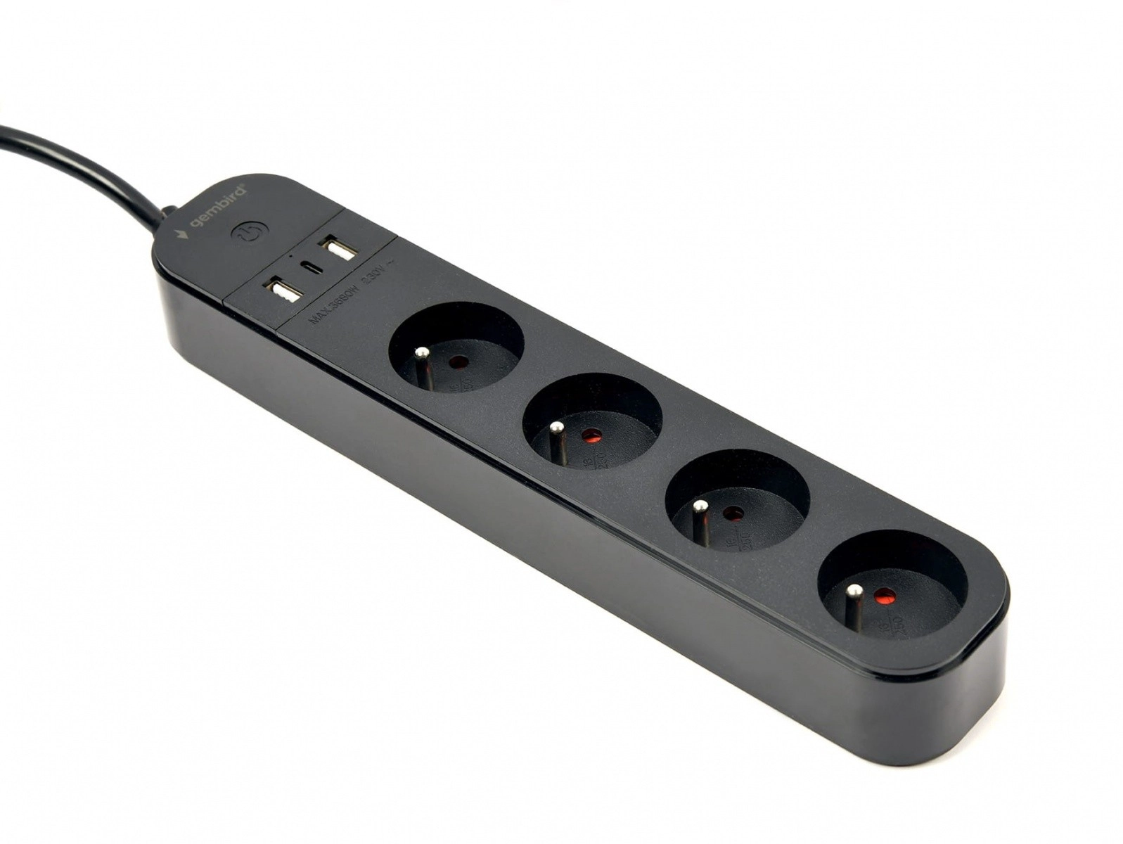 Multiprise parafoudre intelligente Tuya Wi‑Fi 4× prises FR, 2× USB‑A et 1× USB‑C, noire
