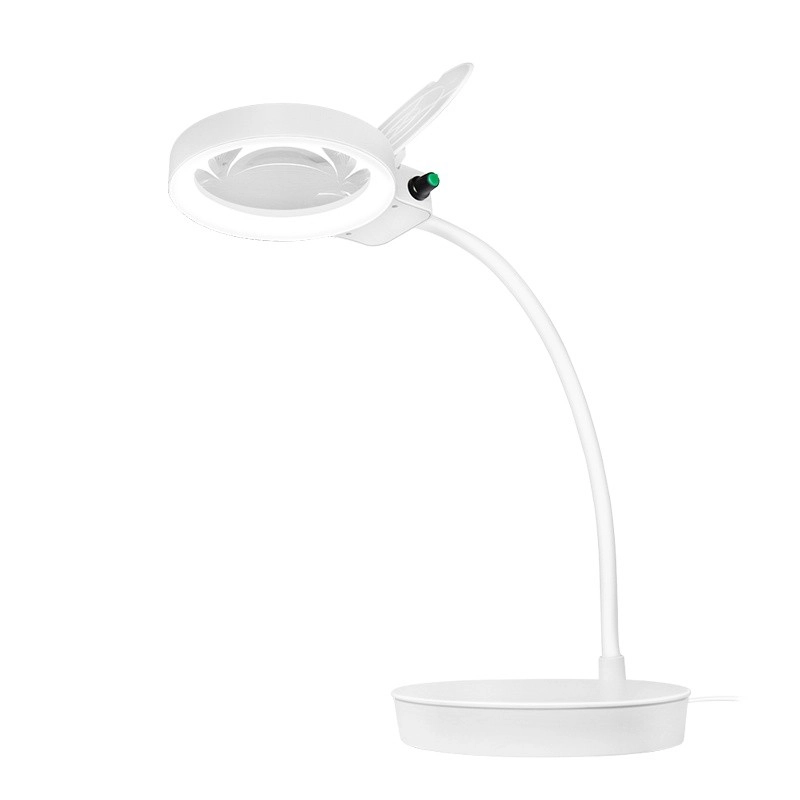 La base robuste et lestée assure une stabilité sur le plan de travail et le capuchon rabattable protège la lentille de la poussière et des rayures. Le design compact avec anneau LED circulaire fournit une lumière uniforme et non éblouissante – idéal pour les maquettistes, horlogers, la lecture de petits caractères ou les réparations électroniques.