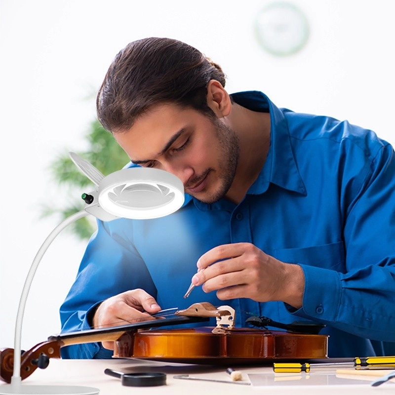 Libérez vos mains et travaillez plus confortablement avec une loupe de table LED offrant un grossissement puissant de 200 % (8 dpt) et 900 % (36 dpt). Grâce au col de cygne flexible, réglez facilement l’angle idéal, tandis que l’éclairage LED intégré assure un cercle lumineux clair et uniforme, sans ombres. Le capuchon rabattable protège la lentille, la base lourde et stable maintient la loupe en place et le travail mains libres devient un jeu d’enfant pour la lecture, les travaux manuels et l’électronique.