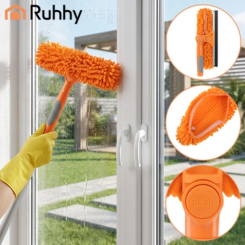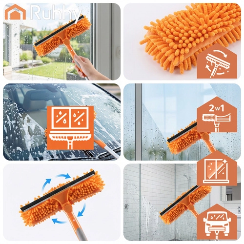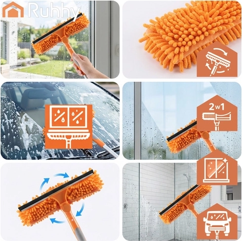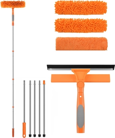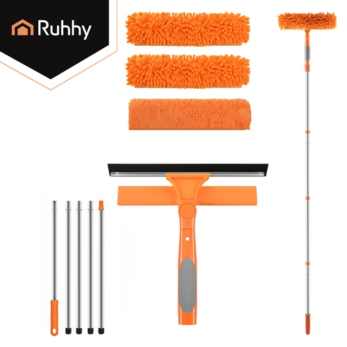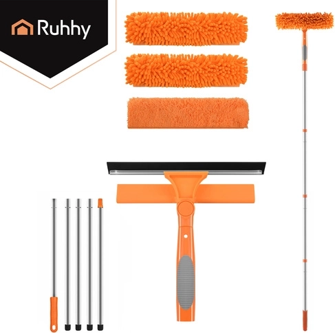 Lave-vitres télescopique 3-en-1 RUHHY 1,8 m avec raclette et microfibres