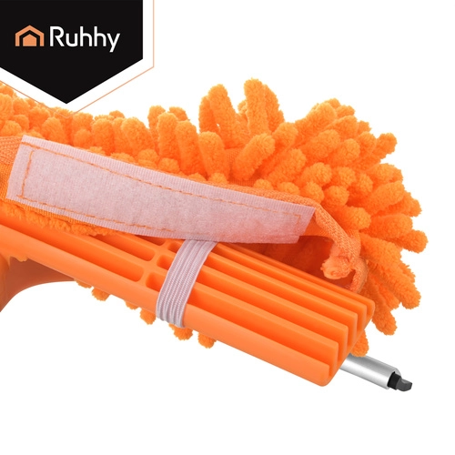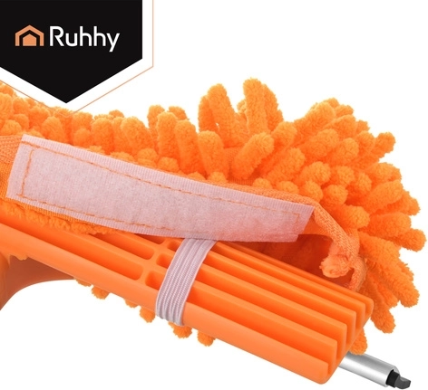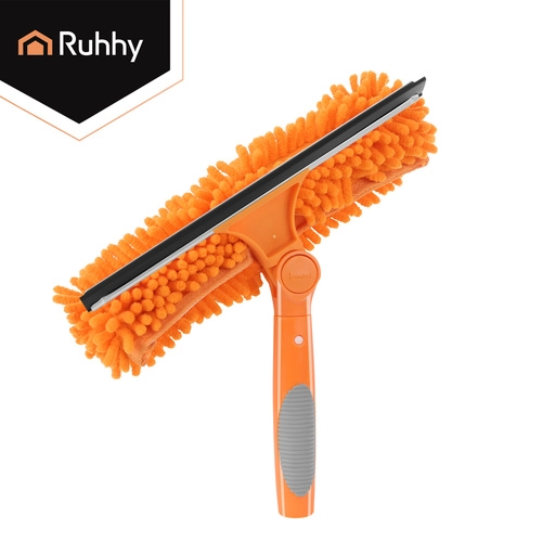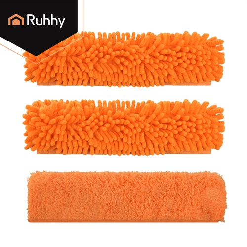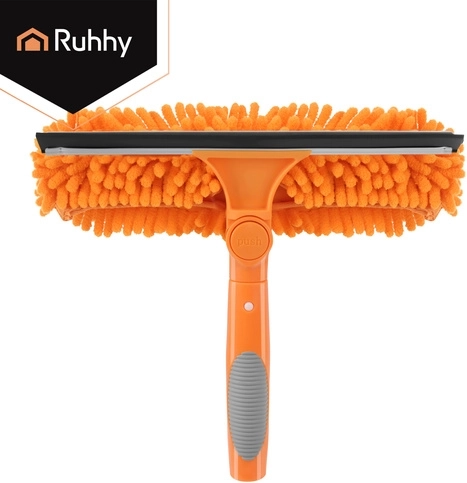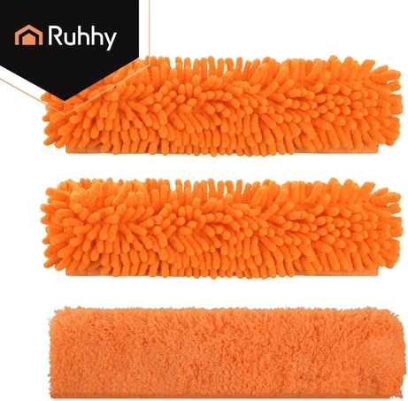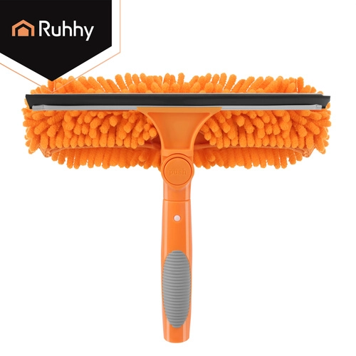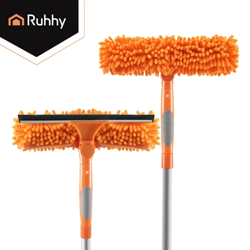 La tête double face associe une microfibre absorbante pour le lavage et une raclette en caoutchouc pour évacuer rapidement l’eau sans laisser de traces. Trois housses interchangeables (2× chenille, 1× velours corail lisse) améliorent l’efficacité selon le type de saleté et sont lavables et réutilisables.