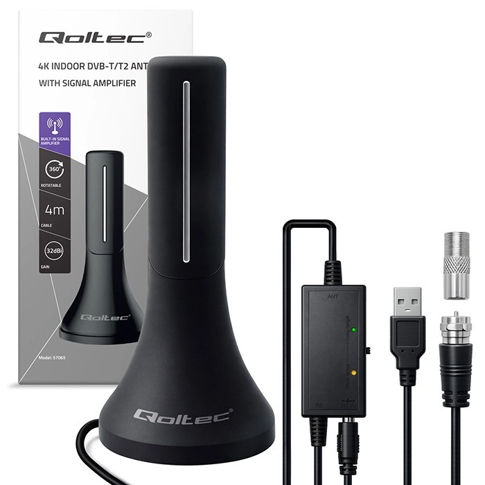 L’antenne intérieure DVB-T/T2 moderne assure une réception stable de la télévision numérique terrestre y compris MUX-1, MUX-2, MUX-3, MUX-6 et MUX-8. Grâce à son amplificateur performant et à son gain élevé de 32 dBi, elle offre une image nette jusqu’en 4K même dans des conditions plus exigeantes. L’alimentation est simple via USB et, avec le connecteur standard F-Male, l’antenne est compatible avec la plupart des tuners et des téléviseurs modernes.