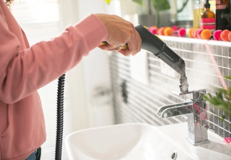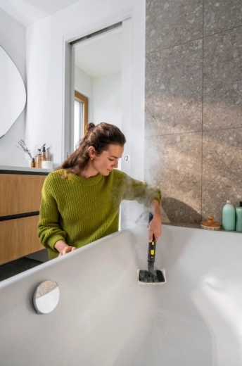 Idéale pour les courbes et les angles autour des robinets, éviers et baignoires. La vapeur pénètre dans les joints et décolle les saletés tenaces sans produits chimiques.