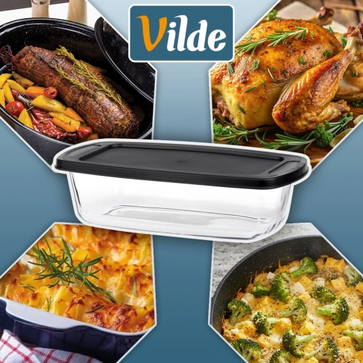 Plat en verre universel d’une capacité de 1,5 l avec un couvercle noir pratique, idéal pour cuire, gratiner et conserver les aliments. Le verre borosilicate résistant supporte des températures de -30 °C à +400 °C (couvercle de -18 °C à 120 °C), parfait pour le four, le micro-ondes, le réfrigérateur et le congélateur. Les poignées intégrées facilitent la manipulation et le couvercle hermétique aide à garder les aliments frais plus longtemps.