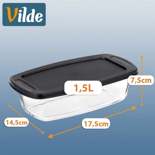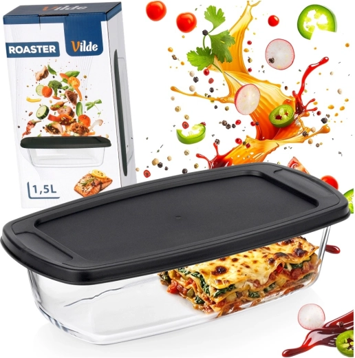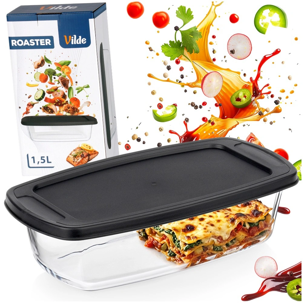 Plat en verre résistant à la chaleur avec couvercle 1,5 l