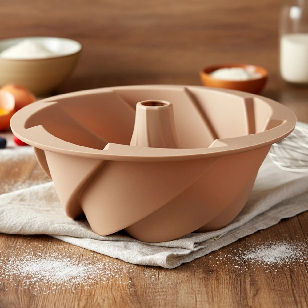 Ce moule à gâteau beige en silicone avec cheminée est un excellent choix pour les amateurs de pâtisserie maison. Grâce au silicone de qualité, la pâte n’adhère pas et le gâteau se démoule facilement sans graisser ni fariner. Le relief en spirale donne à votre gâteau un aspect spectaculaire qui fera sensation sur toute table.