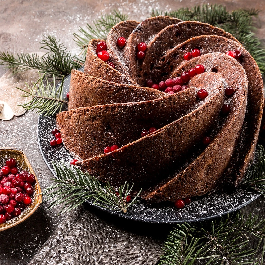 Pratique moule à gâteau en silicone avec cheminée, diamètre 23,5 cm et hauteur 9 cm, assure une cuisson homogène, un démoulage facile sans attacher et un motif décoratif prononcé. Résiste aux températures de -40 °C à 220 °C, est antiadhésif, flexible et compatible lave-vaisselle, congélateur et micro-ondes. Idéal pour les pâtisseries festives comme au quotidien.