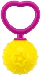La poignée ergonomique permet à bébé une prise ferme et confortable, favorise la coordination œil-main et les premiers essais de préhension autonome.