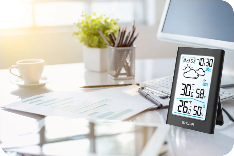 - Surveillance climatique complète – température et humidité intérieures et extérieures, valeurs min/max.