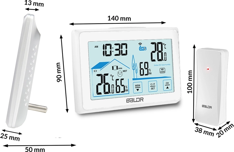 - Mémoire min./max., indicateur de confort, alerte “ouvrir/fermer la fenêtre”, indication de l’état de la batterie