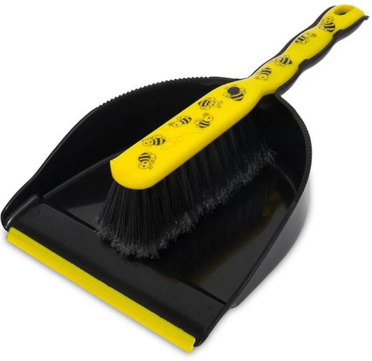 Ensemble pratique pour le nettoyage quotidien – balayette avec pelle au motif Abeilles. Un outil léger, compact et facile à manier qui élimine rapidement les miettes, la poussière et les saletés des sols et des plans de travail.