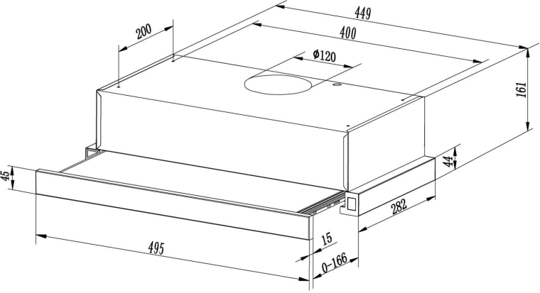 Le panneau avant coulissant augmente la surface d’aspiration et améliore la capture des vapeurs et des odeurs, tout en restant discret et peu encombrant.
