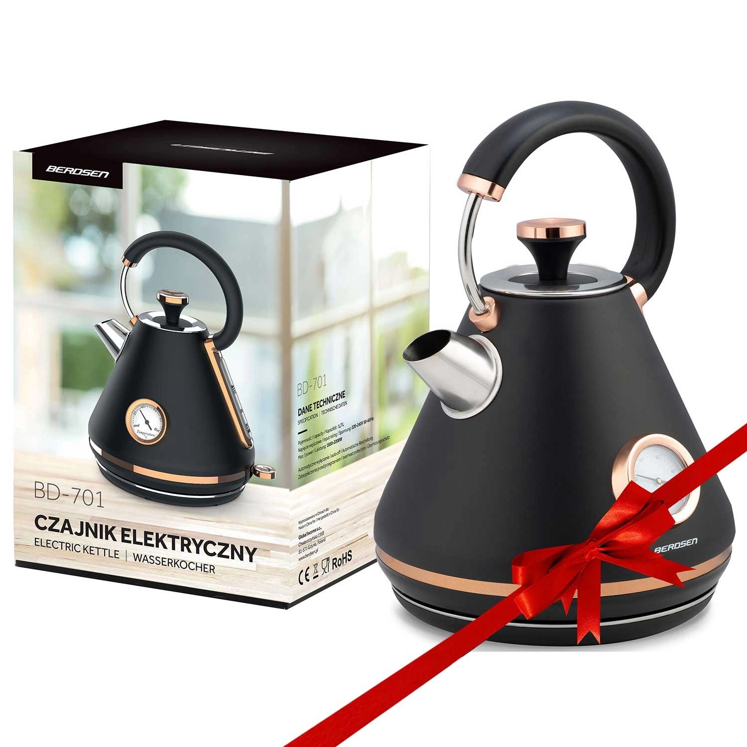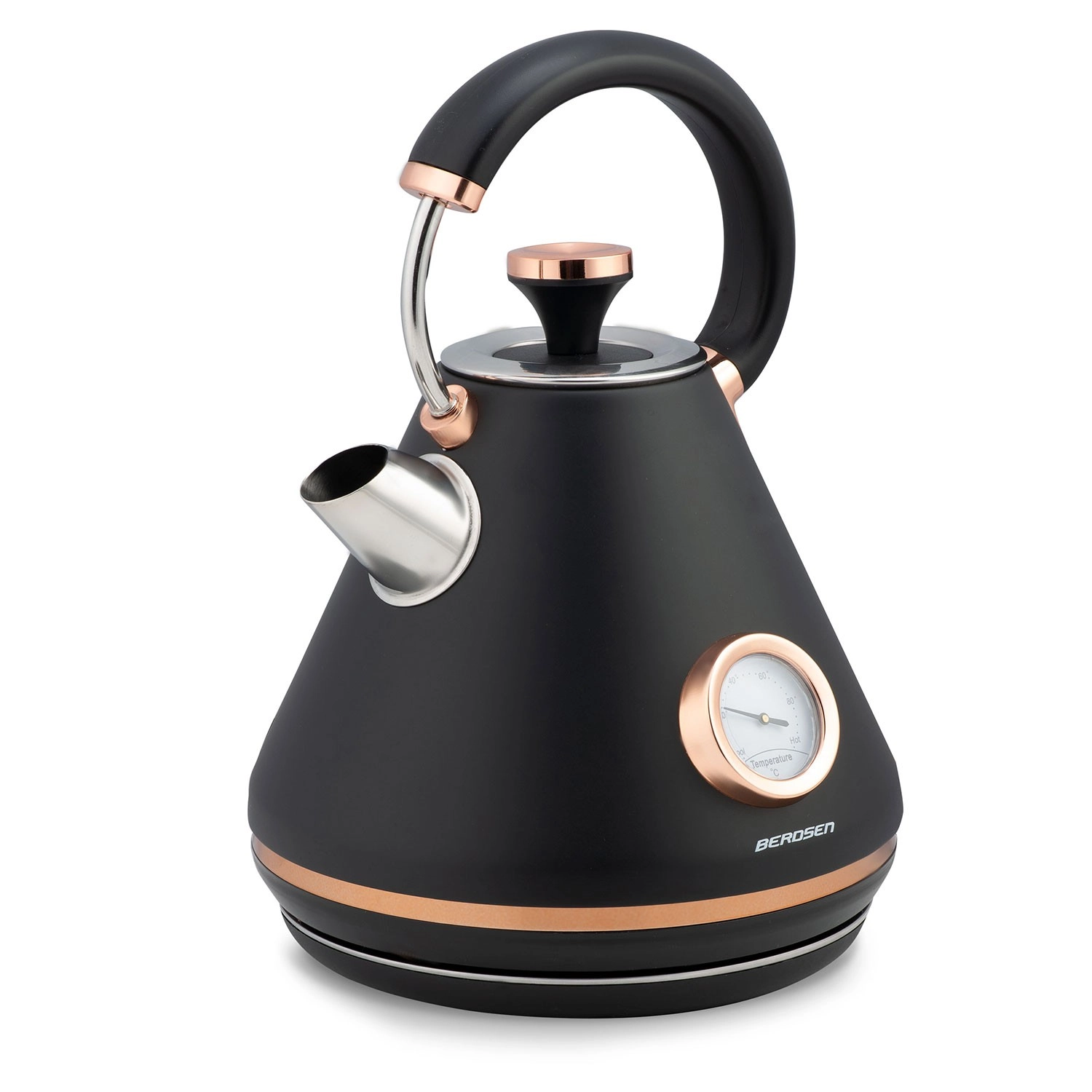 Apportez une touche d’élégance rétro à votre cuisine avec la bouilloire Berdsen de 1,7 l. Grâce au thermomètre intégré, choisissez aisément la température idéale pour le thé vert, le café ou les infusions. La finition métallique mate est facile à entretenir et confère un look haut de gamme à votre intérieur.