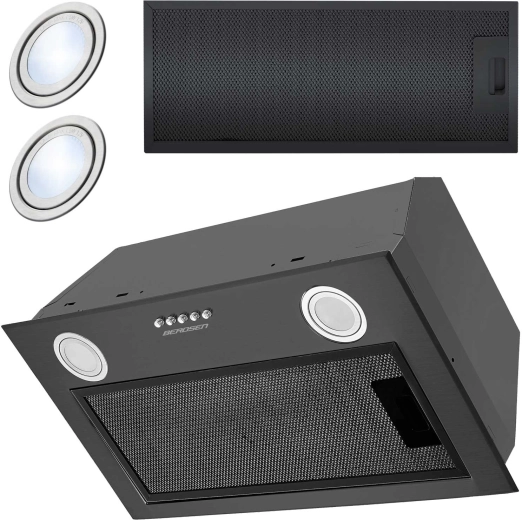 Hotte encastrable compacte de 52 cm en élégant coloris noir, elle garde votre cuisine fraîche en toute fiabilité. Grâce à un débit jusqu’à 380 m³/h, 3 niveaux de vitesse, un éclairage LED économe (2 × 2 W) et un filtre aluminium à cinq couches, elle capte efficacement les graisses, neutralise les odeurs et éclaire clairement la zone de cuisson. Les commandes par boutons et la possibilité de fonctionner en évacuation ou en recyclage en font un choix idéal pour les cuisines modernes et minimalistes.