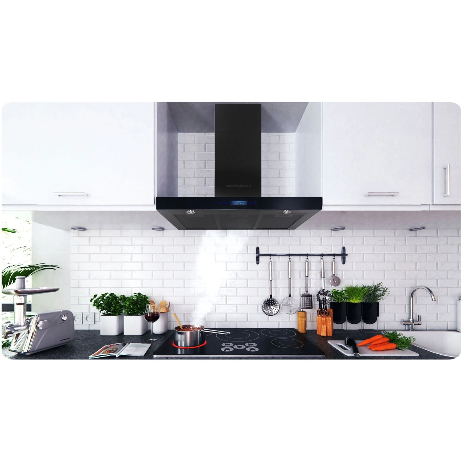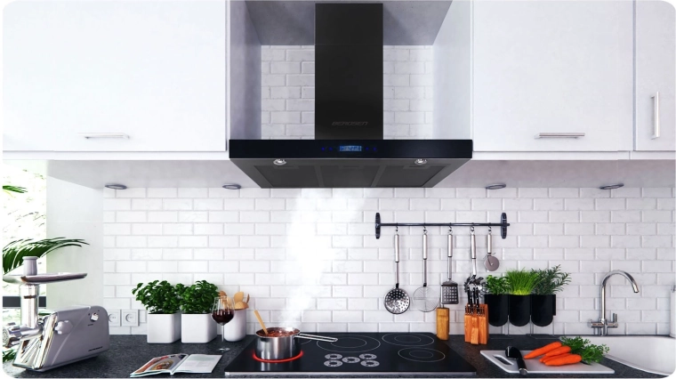 La hotte moderne Berdsen 90 cm en finition noire s’intègre parfaitement aux cuisines contemporaines. Grâce à son moteur puissant de 160 W et à un débit jusqu’à 750 m³/h, elle élimine efficacement vapeur, fumée et odeurs. Le panneau tactile intuitif facilite l’utilisation et les LED (2 × 1 W) économisent l’énergie tout en éclairant agréablement le plan de travail.