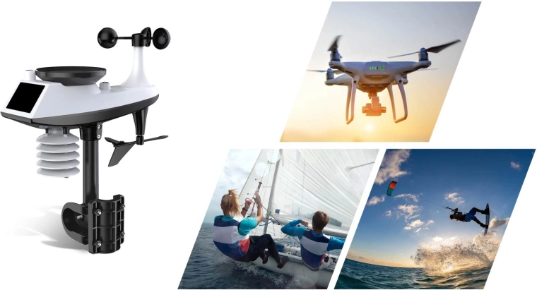Mesure la vitesse et la direction du vent, le cumul des précipitations, la température et l’humidité extérieures. Transmission sans fil stable jusqu’à 100 m et alimentation assistée par solaire.